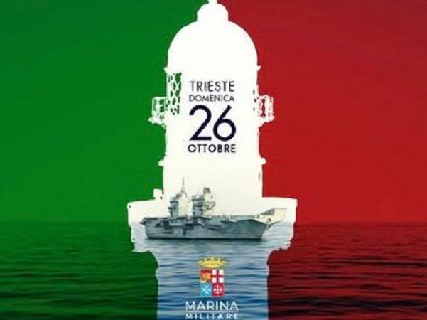 Alla nave Trieste della Marina Militare, giunta nel capoluogo giuliano per celebrare la storica ricorrenza, il Comune consegna la Bandiera di Combattimento