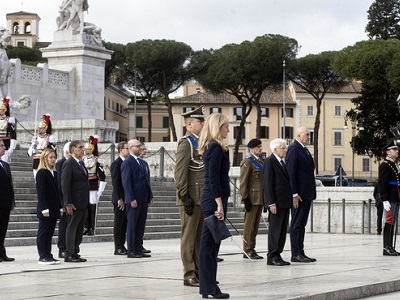 Il Presidente Mattarella depone la tradizionale corona d'alloro. La premier Meloni: "Onoriamo valori democratici negati dal fascismo"